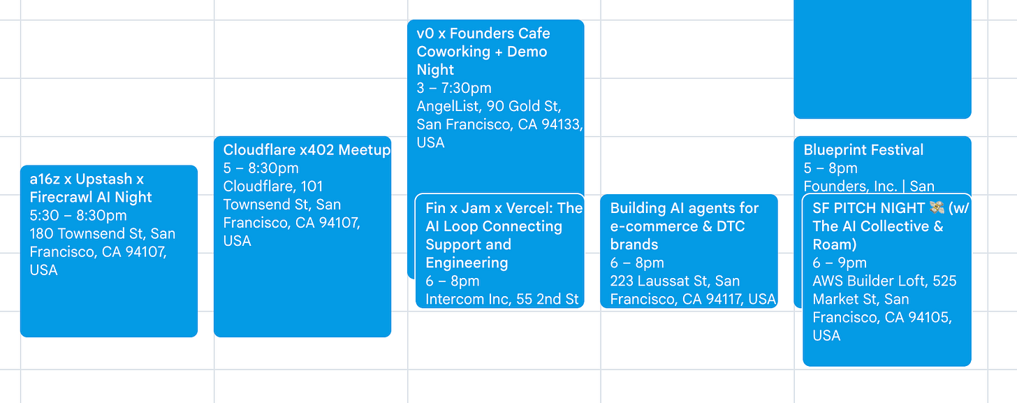 All of these were through Luma, just signing up and waiting for an invite. One thing I’ve learned is that for most events, you can often just show up and see how it goes. If you arrive early without an invite, it’s quite possible to get in.